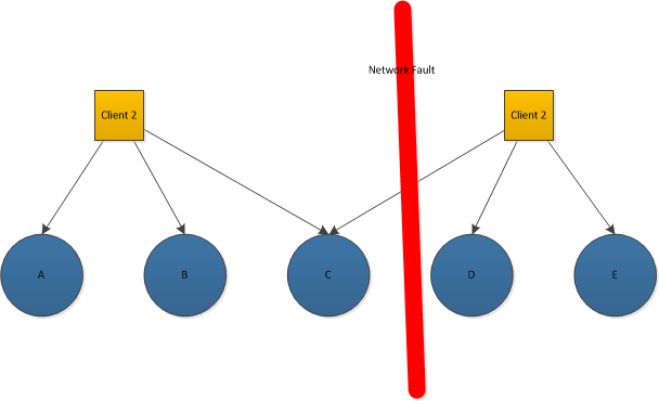 如果你允许(业务上允许)图示中的client2进行read操作,则CAP-consistent也会丢失,只能称之为P(CAP的3选2现在成了3选1)