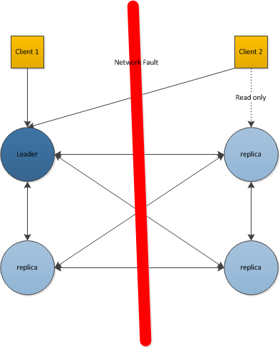 如果你允许(业务上允许)图示中的client2对replica进行read操作,则CAP-consistent也会丢失,只能称之为P(CAP的3选2现在成了3选1)